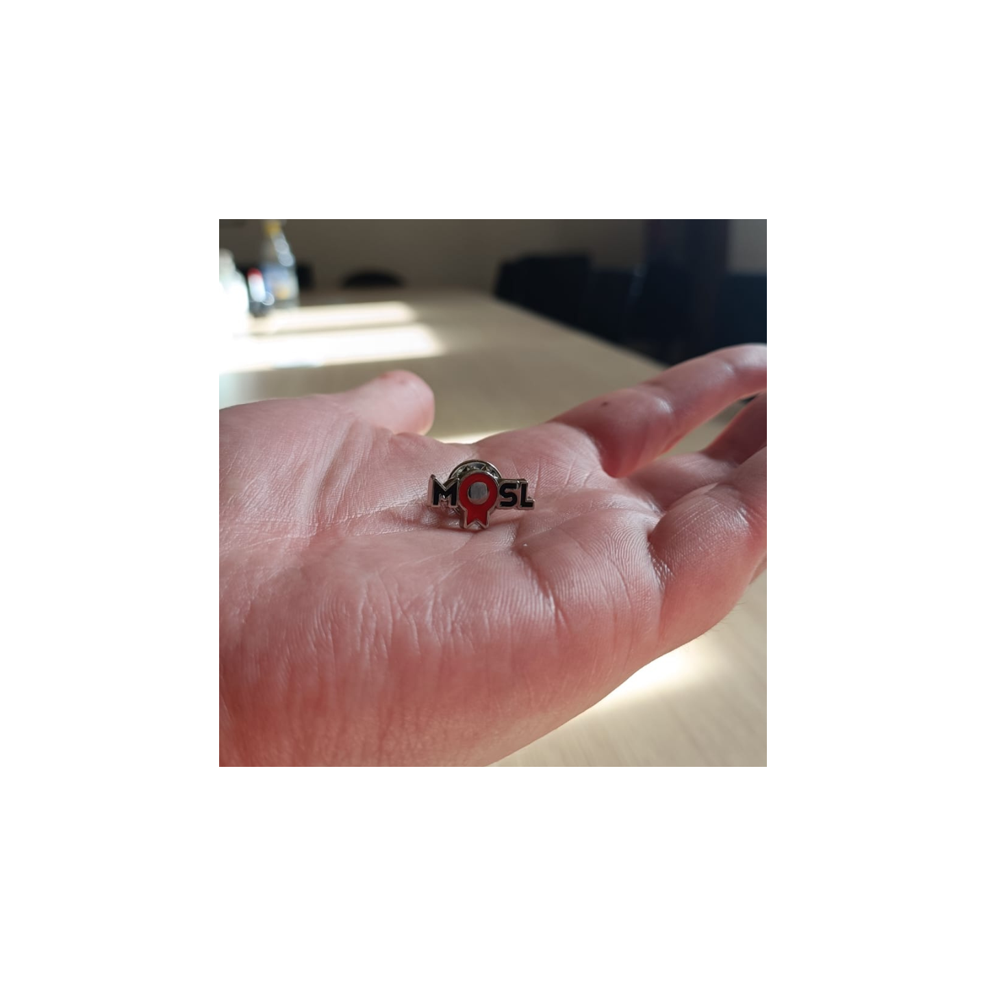 Pin’s en résine émaillée aux couleurs de Qualité MOSL, élégant et durable pour afficher fièrement votre engagement.